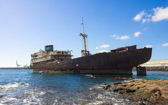 Barco Telamon, Temple Hall, Las Caletas bei Arrecife, Lanzarote Lage & NamenDas Wrack des Frachters Telamon liegt vor Lanzarote in der Zone zwischen Arrecife und Costa Teguise, im Bereich Las