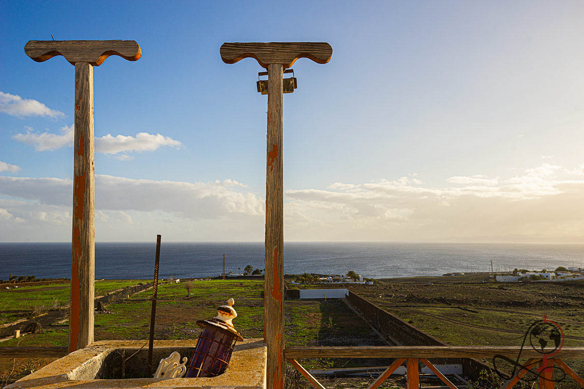 Das Objekt liegt in einer von vulkanischem Gestein geprägten Landschaft mit landwirtschaftlich genutzten Flächen in Küstennähe. Mehrere Terrassenebenen, eingefasst von niedrigen Mauern aus regionalem Lavagestein, strukturieren das Grundstück. Durch die erhöhte Position besteht ein weiter Blick über die umliegende Landschaft bis zum Atlantik. Die offene Lage führt zugleich zu einer dauerhaften Einwirkung von Wind, intensiver Sonneneinstrahlung und salzhaltiger Meeresluft.