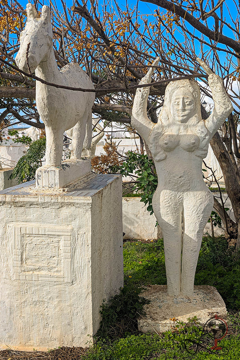Ich war 2026 mittags vor Ort. Wir kamen eher zufällig am Wegesrand vorbei und entschieden spontan anzuhalten. Bei schönstem Wetter, klarem Himmel und intensiver Mittagssonne traten die weißen Figuren besonders stark hervor, während Schatten harte Kontraste auf Böden und Mauern zeichneten.