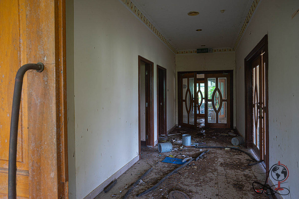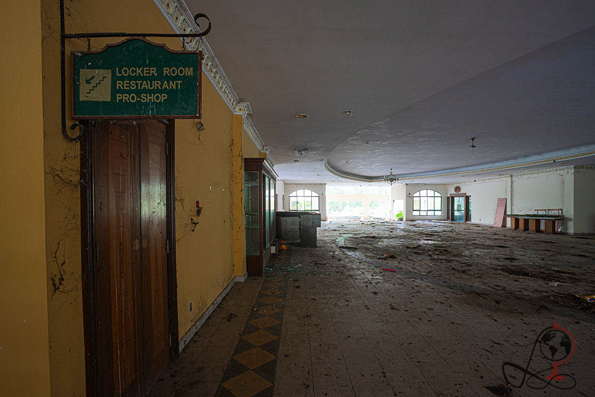Ich habe dieses verlassene Golfresort in Malaysia im Jahr 2024 fotografiert. Den ursprünglichen Namen nenne ich zum Schutz des Ortes bewusst nicht. Schon beim ersten Rundgang war die frühere Funktion klar zu erkennen. Auf dem Gelände und im Gebäude sind noch Hinweise wie Golfer Registration, Driving Range und Tee Off zu sehen. Dazu kommen typische Bereiche eines Clubhauses wie Lobby, Restaurant, Pro Shop und Locker Room. Genau diese sichtbaren Spuren machen den Ort so eindeutig lesbar.