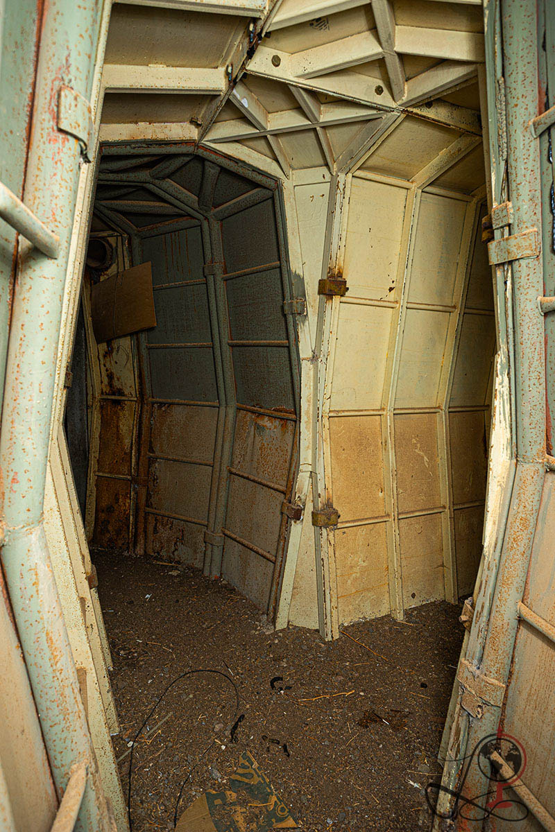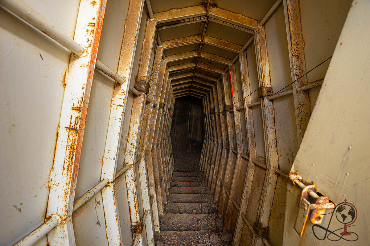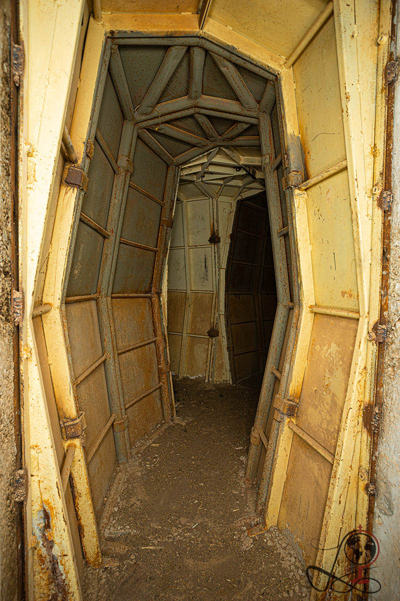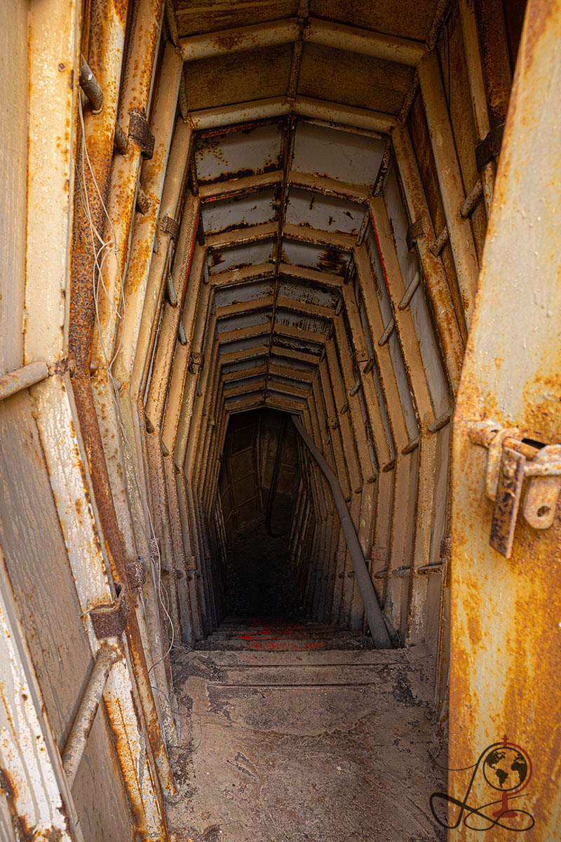 Besonders auffällig sind die metallverkleideten Gänge und Türsysteme. Sie wirken wie eine spätere Verstärkung, gebaut für Schutz und für Bewegung unter Deckung. Genau das macht den Ort fotografisch stark. Die Oberfläche erzählt leise. Das Innere erzählt direkt.