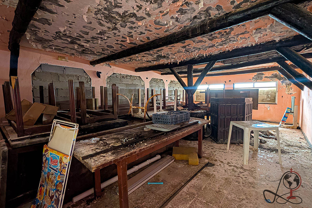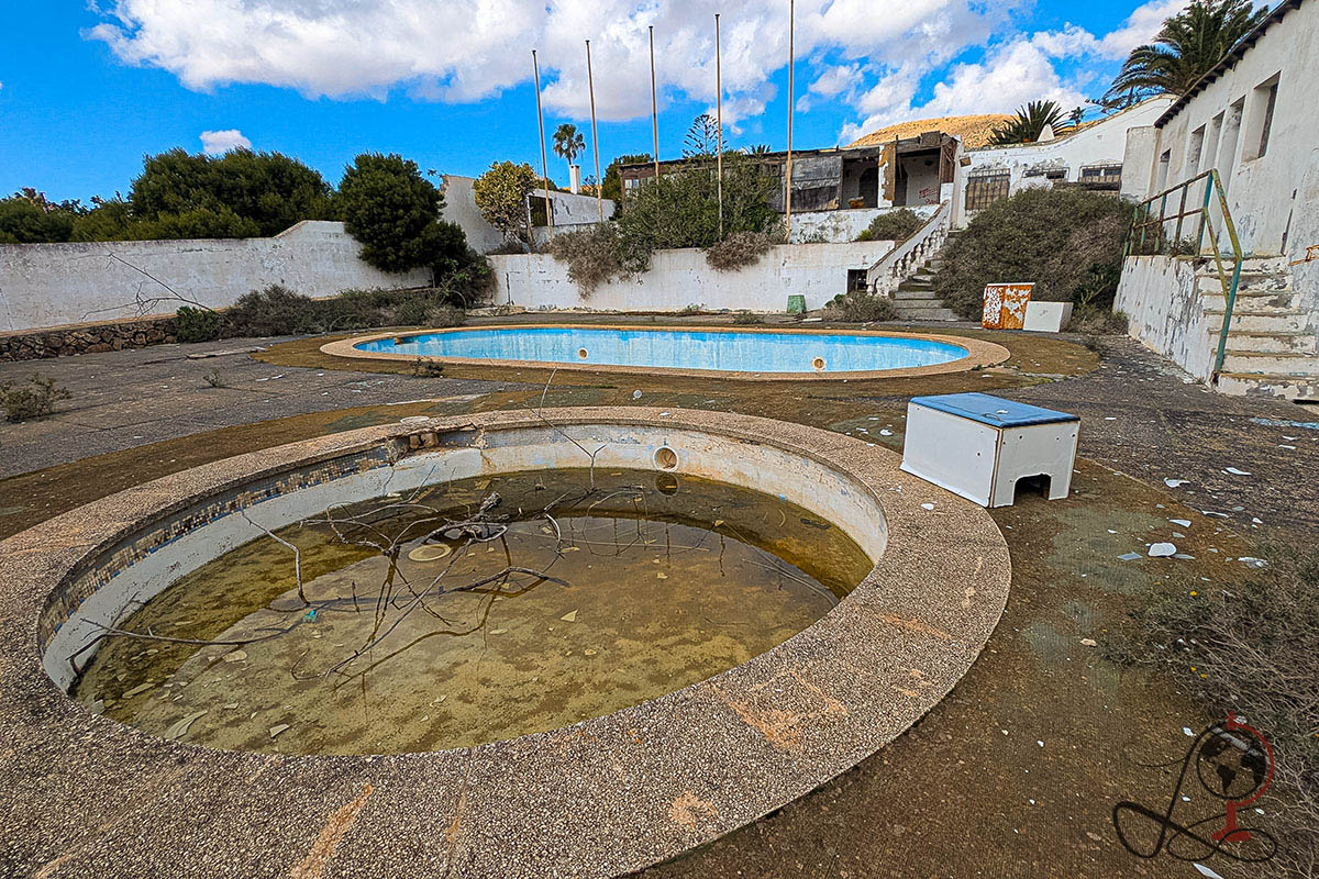 Dieses verlassene Hotel mit Restaurant liegt in einer stillen, offenen Landschaft auf Lanzarote. Von außen wirkt die Anlage zunächst wie ein gewöhnlicher Komplex aus Nebengebäuden und Terrassen, doch im Inneren erzählen Speiseräume, ein Barbereich und ein weitläufiger Poolbereich von einem Ort, der einst für Gäste, Essen und lange Abende gebaut wurde. Heute bleibt vor allem Wind, Salzluft und eine Ruhe, die man auf der Insel nur abseits der bekannten Routen findet.