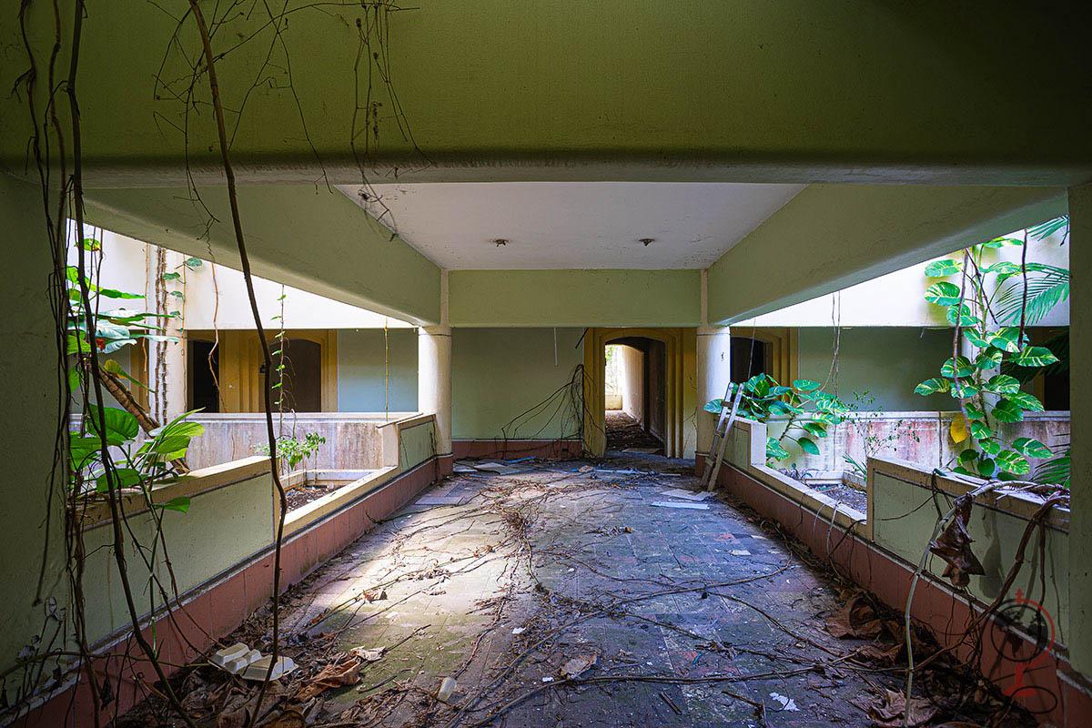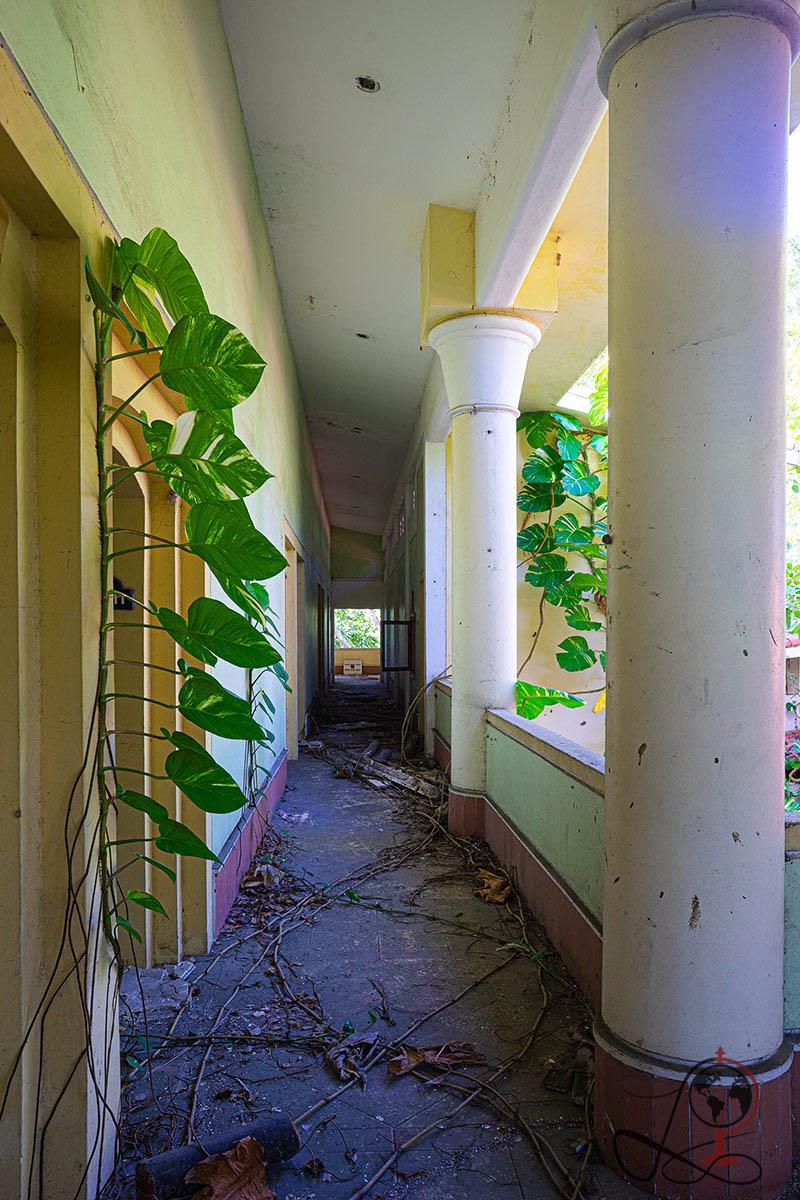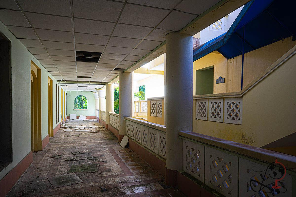 Ich war 2025 vor Ort und verbrachte mehrere Stunden in der Anlage. Die Dimension des Resorts wird erst spürbar, wenn man die langen Flure, die offenen Rotunden und die weitläufigen Poolbereiche durchquert. Überall zeigt sich, wie sich die Natur die Räume systematisch zurückholt. Pflanzen wachsen durch Fensteröffnungen, Dächer sind teilweise beschädigt, und in vielen Bereichen liegen Laub, Schutt und organische Reste. Trotz des fortgeschrittenen Verfalls bleibt die Grundstruktur klar erkennbar. Genau diese Mischung aus tropischer Atmosphäre, architektonischer Weite und schleichendem Zerfall macht das Moonlit Lagoon Resort zu einem eindrucksvollen Dokument des gescheiterten Küstentourismus.