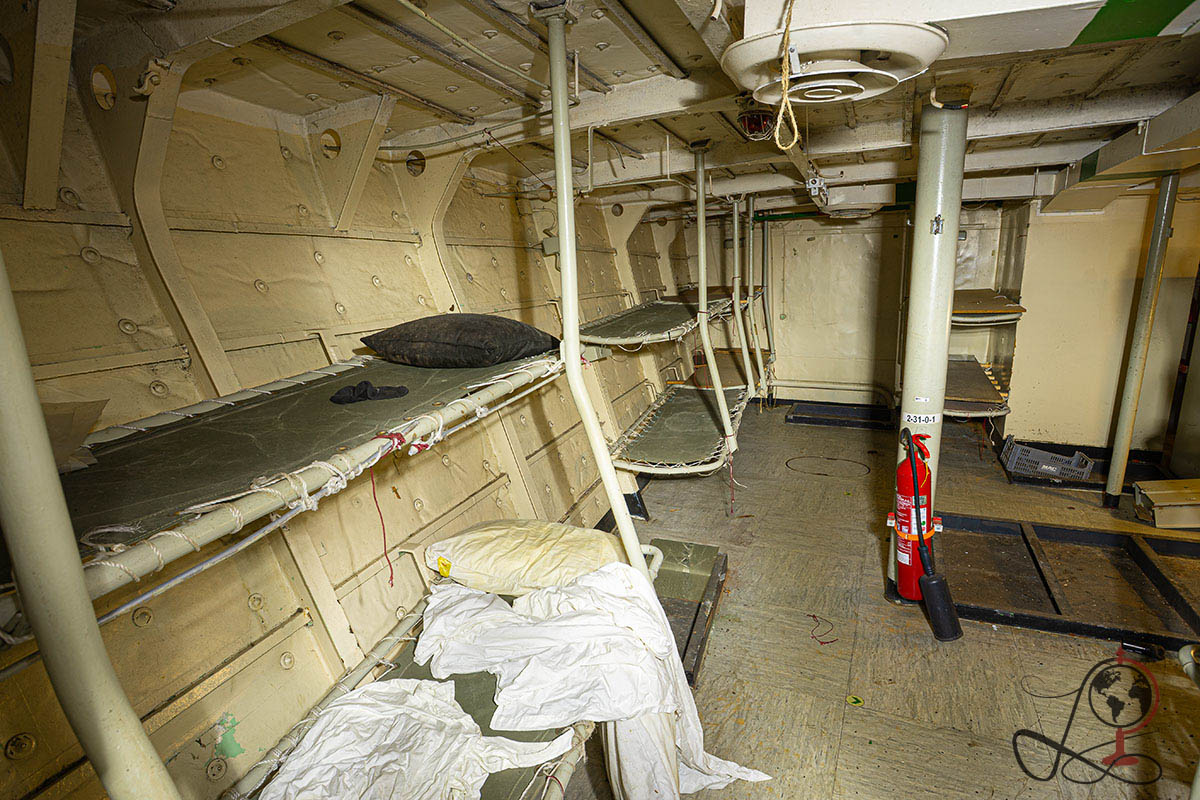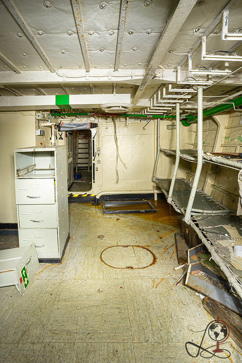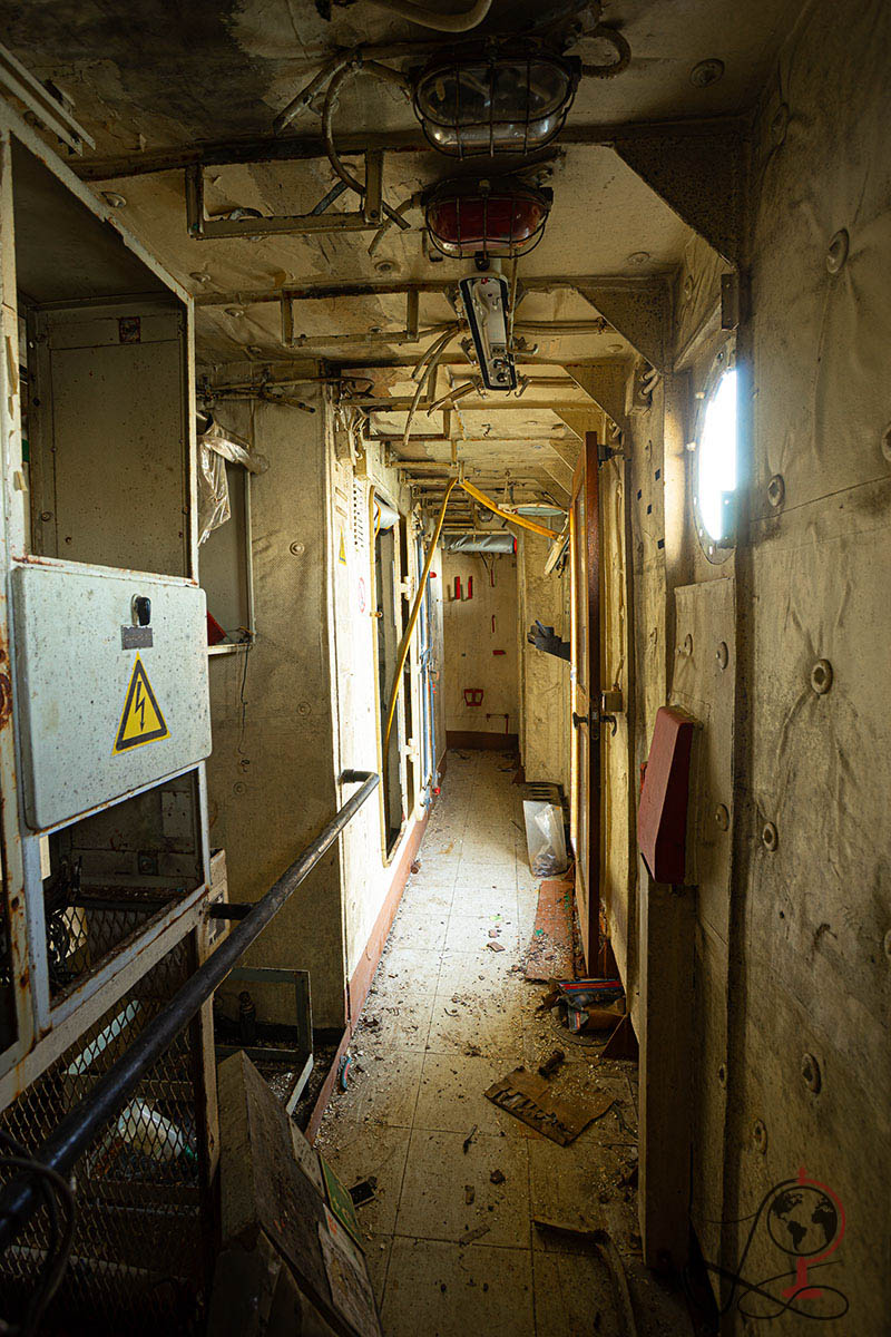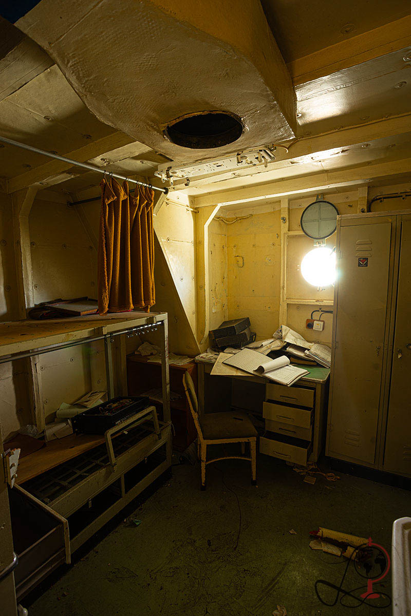 In den Gängen und Räumen waren noch viele Spuren von Betrieb sichtbar. Schlafkojen, Schotts, Technikschränke, ein Innenleben, das nicht nach Dekoration aussieht, sondern nach Alltag. Das ist kein romantischer Verfall, sondern ein sehr nüchternes System, das plötzlich keine Mannschaft mehr hat. Gerade dadurch wirkt es so direkt.