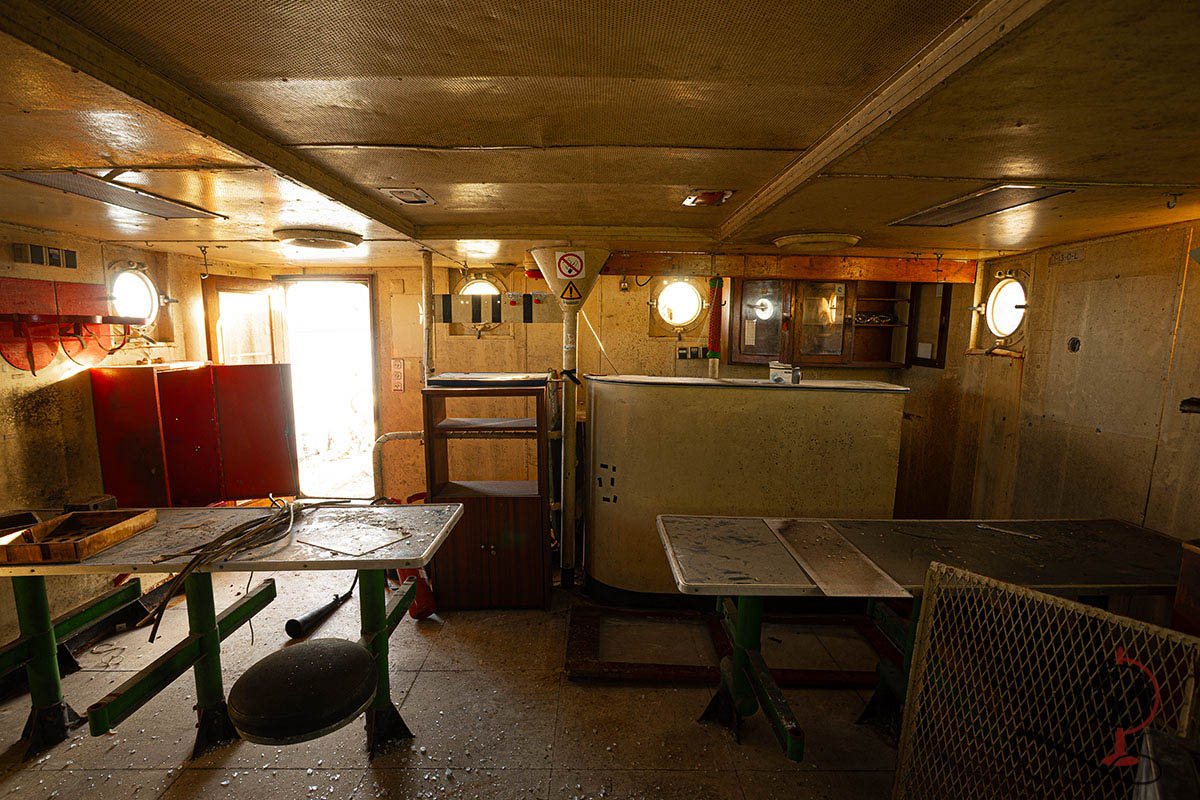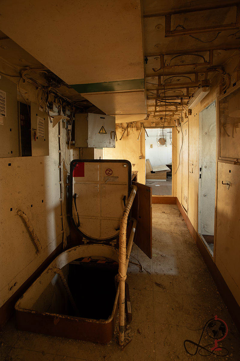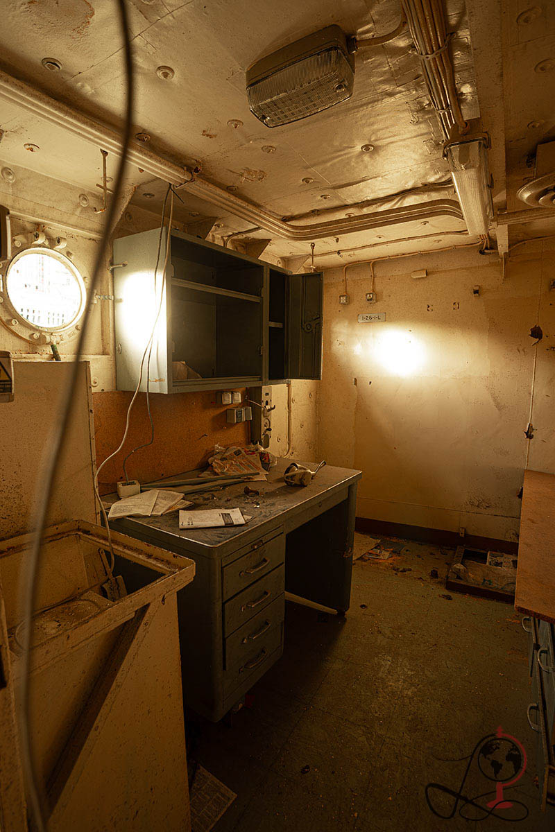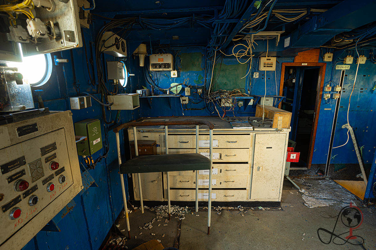 In den Gängen und Räumen waren noch viele Spuren von Betrieb sichtbar. Schlafkojen, Schotts, Technikschränke, ein Innenleben, das nicht nach Dekoration aussieht, sondern nach Alltag. Das ist kein romantischer Verfall, sondern ein sehr nüchternes System, das plötzlich keine Mannschaft mehr hat. Gerade dadurch wirkt es so direkt.