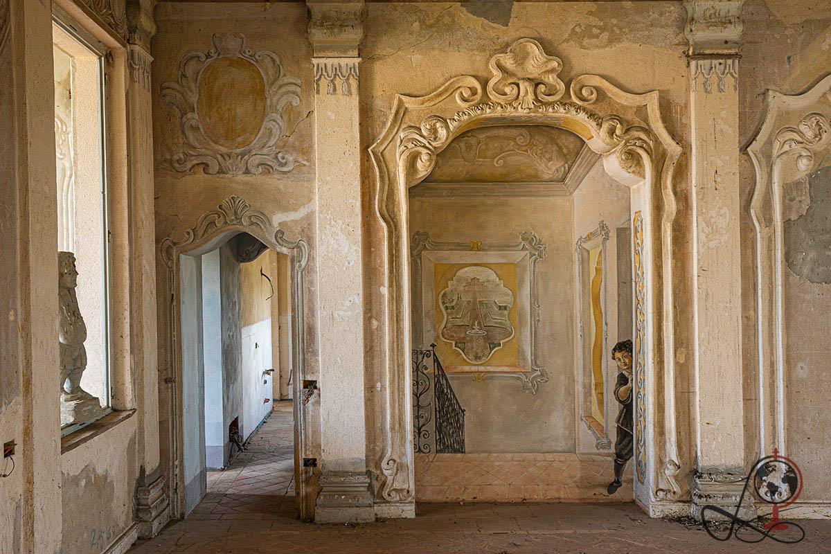 Heute befindet sich die Villa in einem deutlich geschwächten Zustand. Putz bröckelt, Feuchtigkeit zeichnet Spuren in den Decken und Teile der Einrichtung sind verschwunden. Dennoch sind große Teile der Stuck- und Freskenarbeiten erhalten, was die Villa del Cavaliere zu einem der eindrucksvolleren barocken Lost Places Italiens macht.